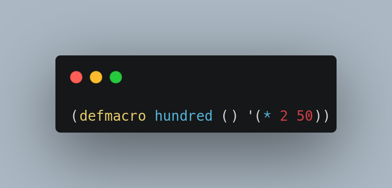 We defined a macro called hundred that receives no parameters. It returns the result of multiplying 2 and 50.