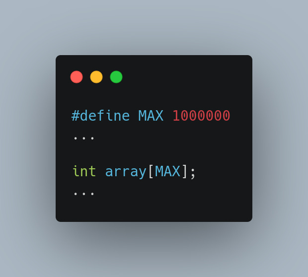 Before actually compiling the program, the C compiler substitutes any occurrence of MAX for 1000000. Extending that functionality, we could modify the syntax for for loops and if statements if we wanted. But there's still an important limitation.